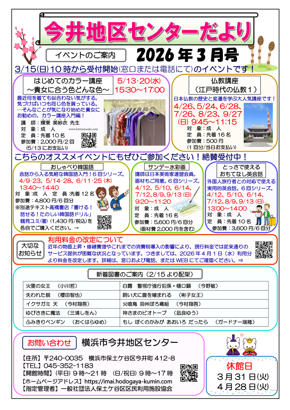 3/15(日)受付開始の自主事業を公開しました!4/26、5/24、6/28、7/26、8/23、9/27 (日) 9:45〜11:15 「<仏教講座>江戸時代の仏教1=全6回=」